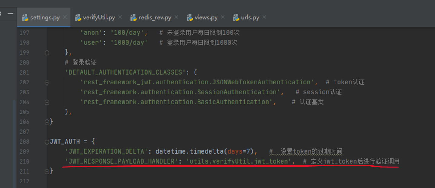 settins.py配置函数为自定义认证响应函数