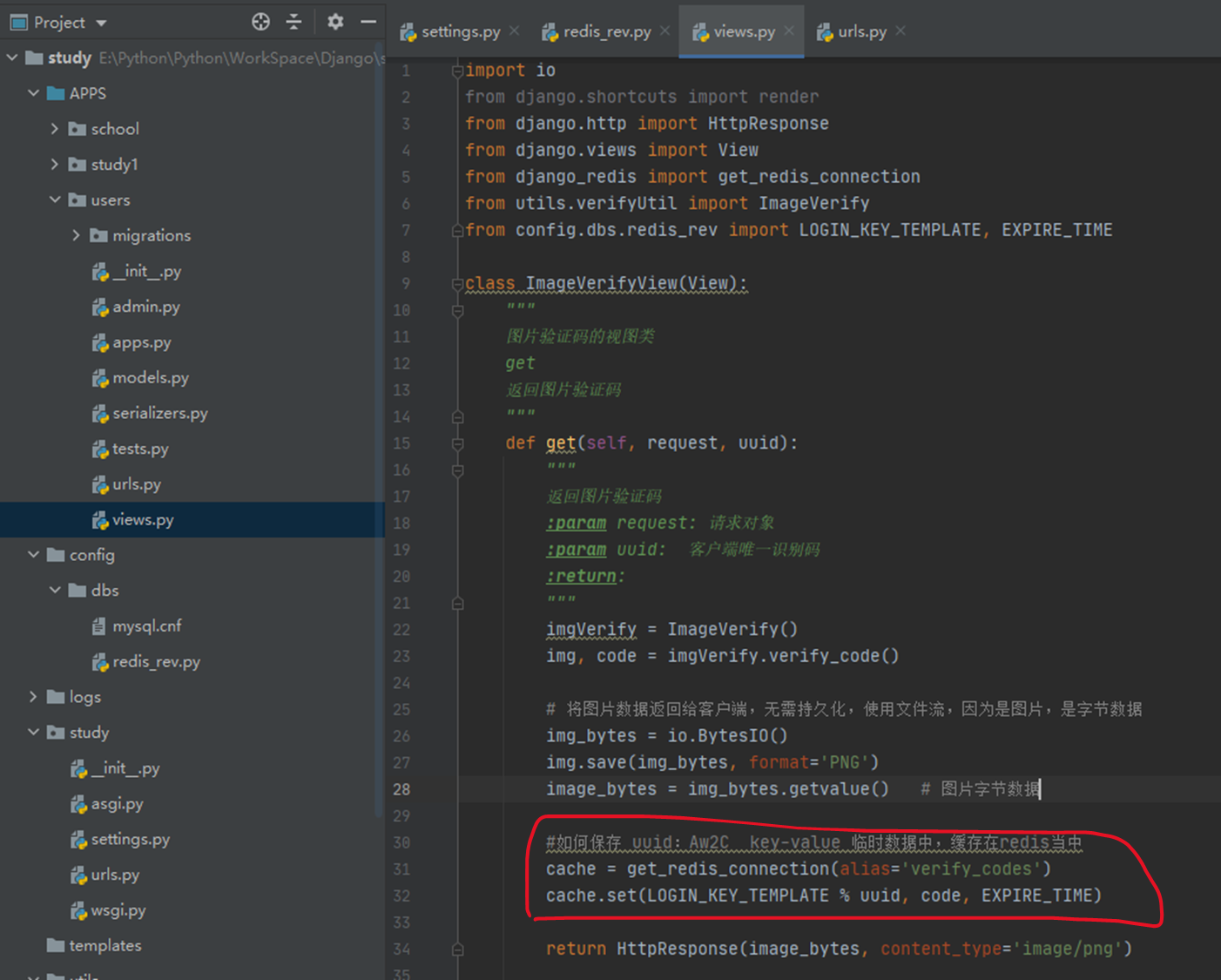 config/dbs文件夹中新建redis_rev.py文件,给定redis配置(可直接在settings.py文件中给定,因为也是需要调用导入的)