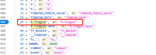 3X-Tingyun,我们全局搜索这个字段,发现被赋值给pt这个属性