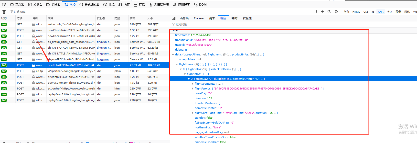 1,打开开发者工具仔细搜索,发现briefInfo这个接口返回了数据。