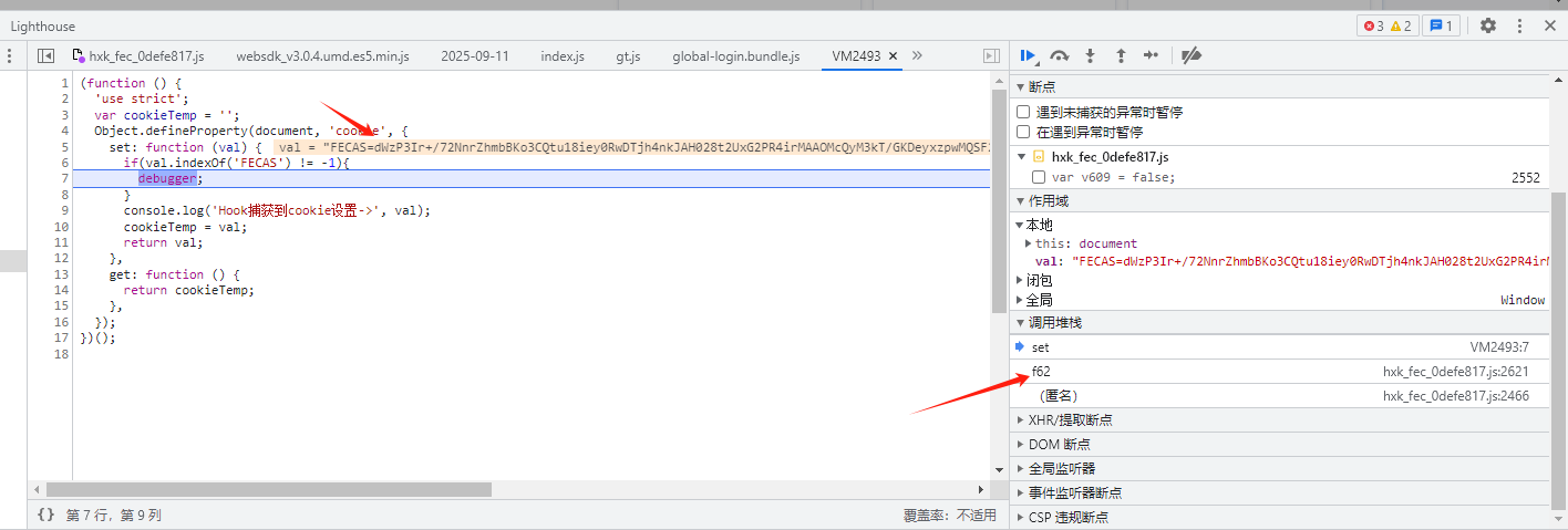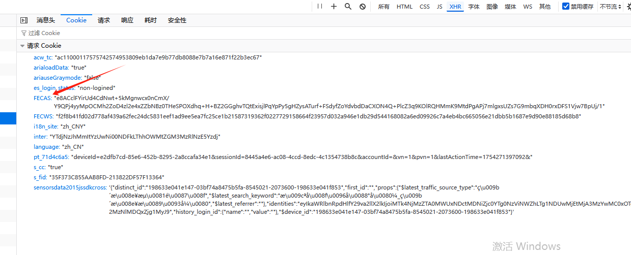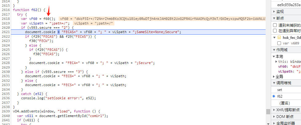 4 FECU 上面主包说了FECU跟cookie的FECAS很像,咱们做下对比,看一下,发现长度是一样的,前150位相同,后44位不一样,这样的话,咱们就给cookie下一个hook看一下