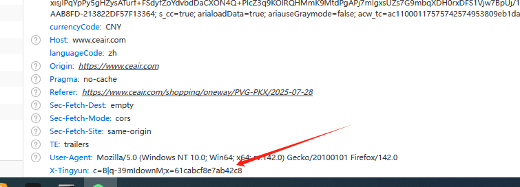 2继续看带加密的有什么,这里面url里面会拼接一个FECU的参数,喝cookie的FECA一样。hearder里面还有一个X-Tingyun的字段