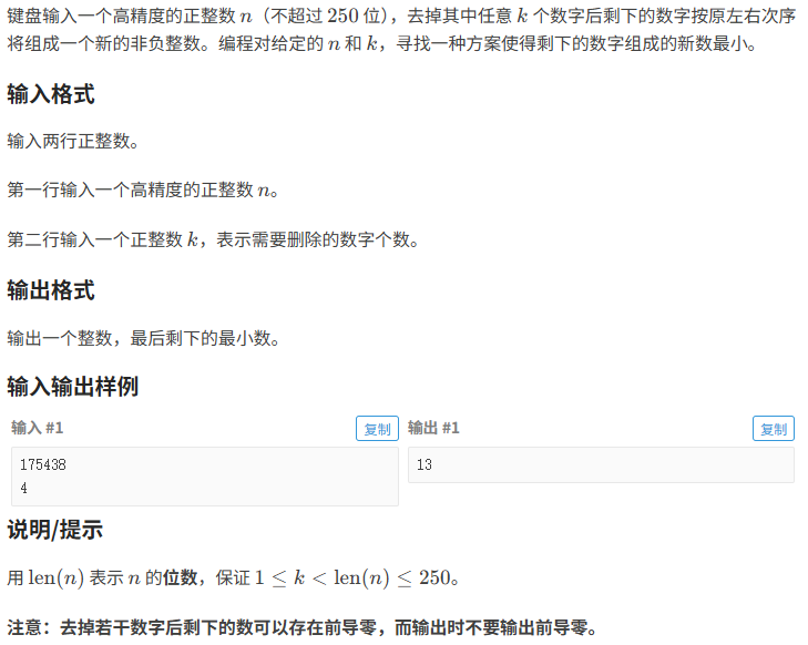 题目的意思是:给出一个数 删除n个数 使其剩下的值最小
