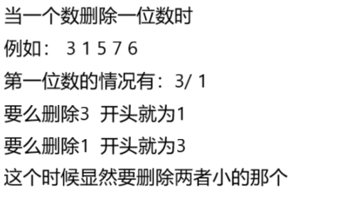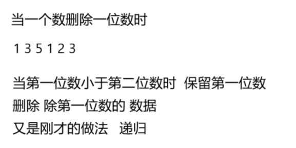 从头到尾 找相邻两个数 找到第一个数大于第二个数的位置 把第一个数的位置删掉即可