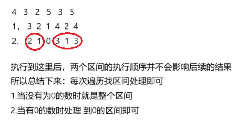 - 当数组中不存在0,直接处理整个数组 需要涂抹的次数是 数组中的最小的非0值