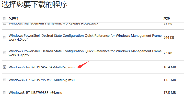 ●选择Windows6.1-KB2819745-x64-MultiPkg.msu安装升级版本