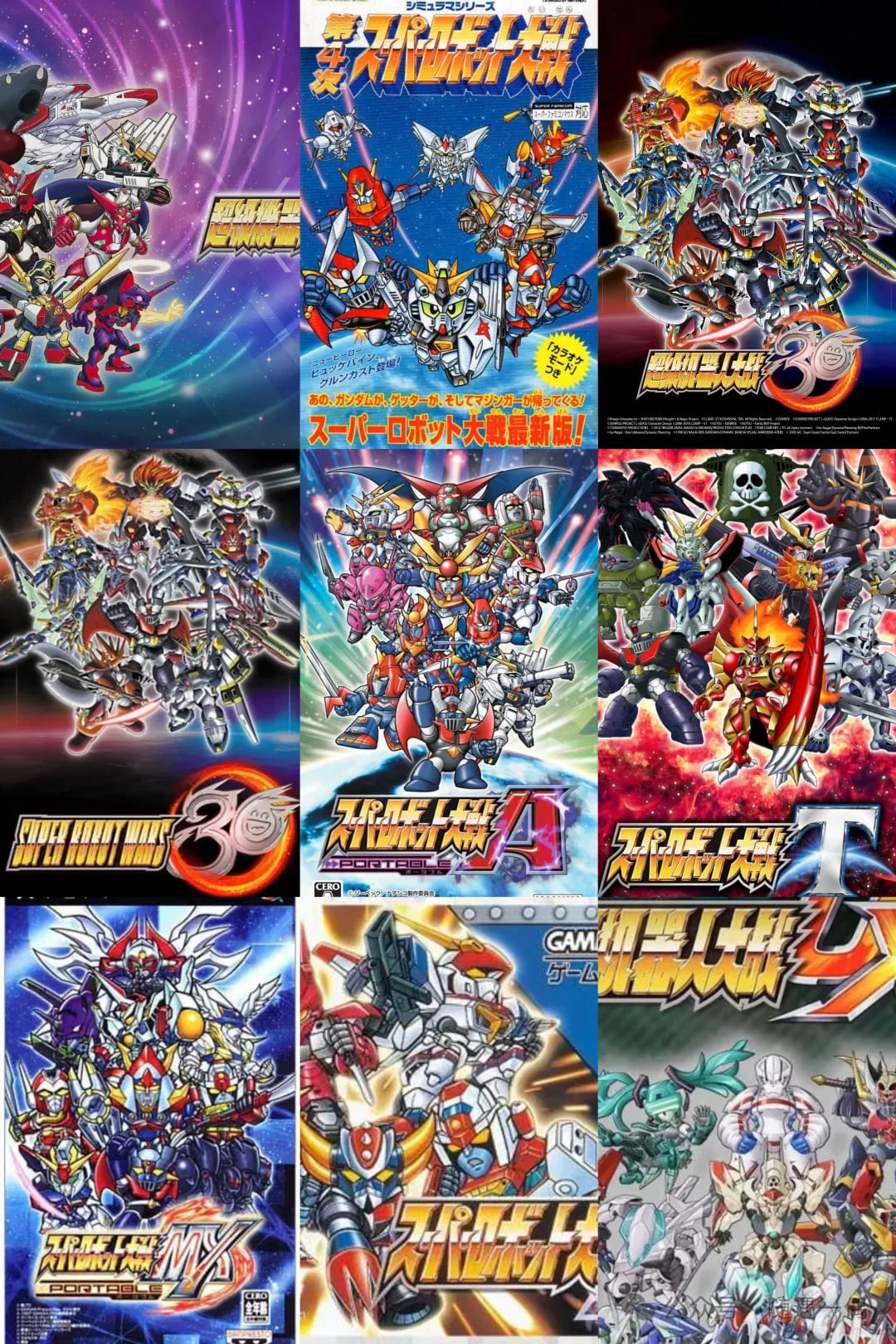 机战松鼠症狂喜,基本上收集了到PS3,NS(机战30)的所有机战作品(包括OG,魔装机神)除了XBOX360一作,其他平台还有可能极少数的缺少,找到后再补完。