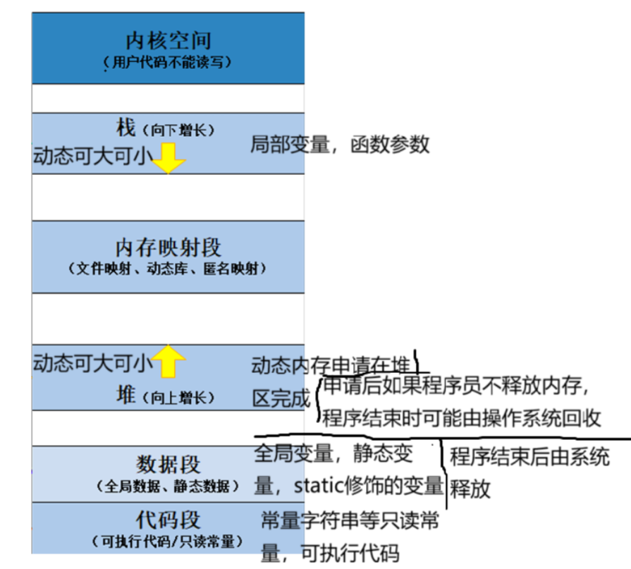 每次函数调用都需要从栈区申请空间,这块空间就是函数栈帧(由高地址向低地址使用)