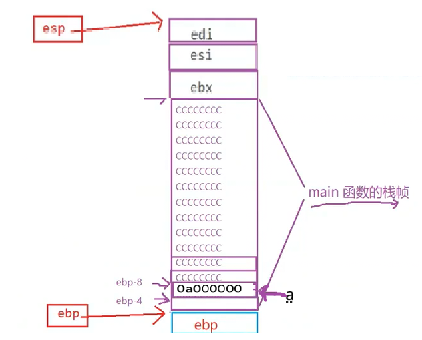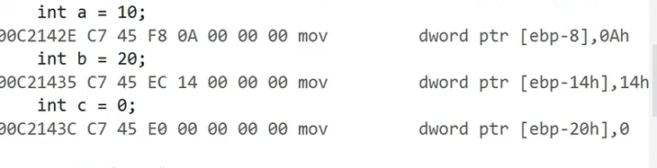 1.把0Ah(10)放到ebp-8的位置,此时变量a的地址就是ebp-8