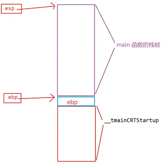 调用main函数之前,esp,ebp在维护_tmainCRTStartup的函数栈帧