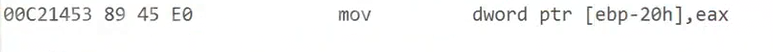 将eax的值(返回值)放到ebp-20h(变量c)中