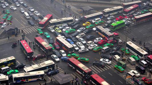 死锁理解起来很简单,就是一个字,堵,下面图中拥堵的十字路口就可以看做一个死锁的状态,四个方向的车都要往前走,但是十字路口只有一个,只能允许一个方向的车通过后,才能让另一个方向的车通过。