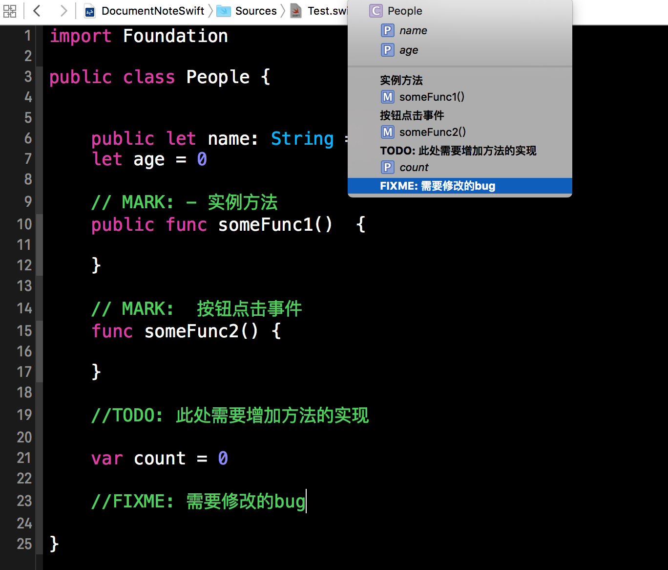 Swift小知识点之项目中使用MARK,TODO,FIXME