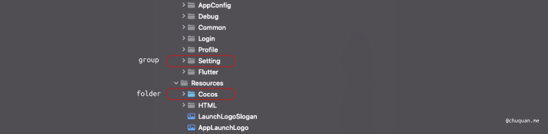 - Group 只在工程一般是文件夹的形式,但是在本地的目录还是以散乱的形式放在一起,除非是从外部以 group 的形式引用进来,这种情况下的 group 同时是一个文件夹实体。