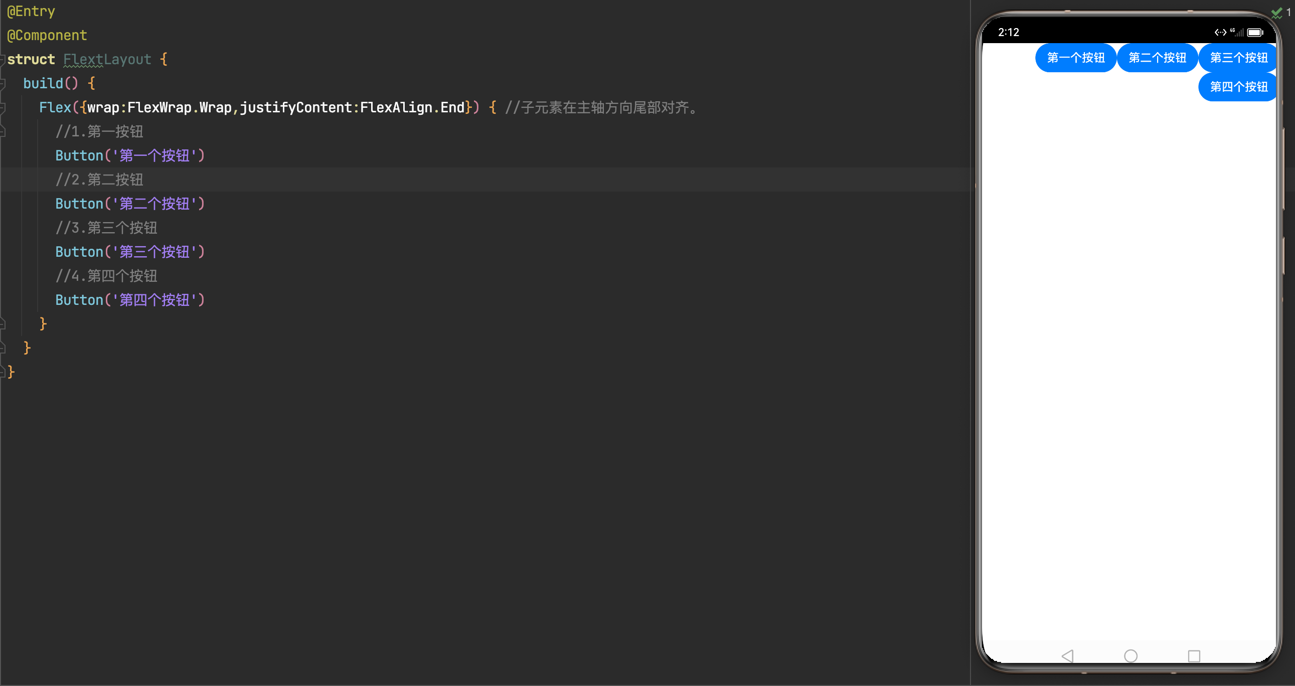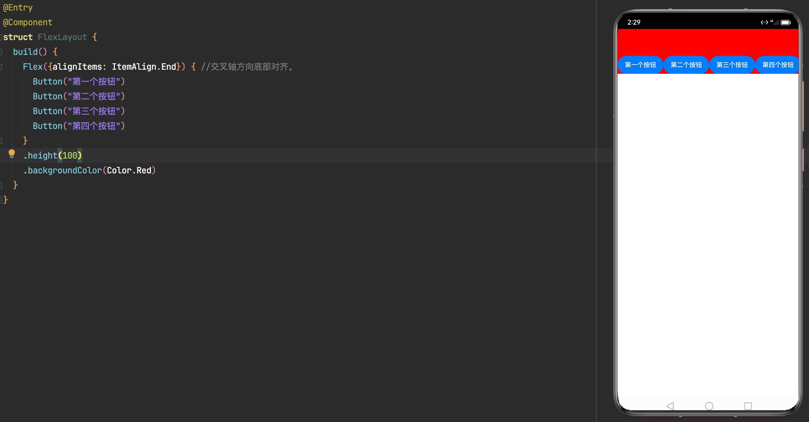 FlexAlign.End:子元素各行与交叉轴终点对齐。