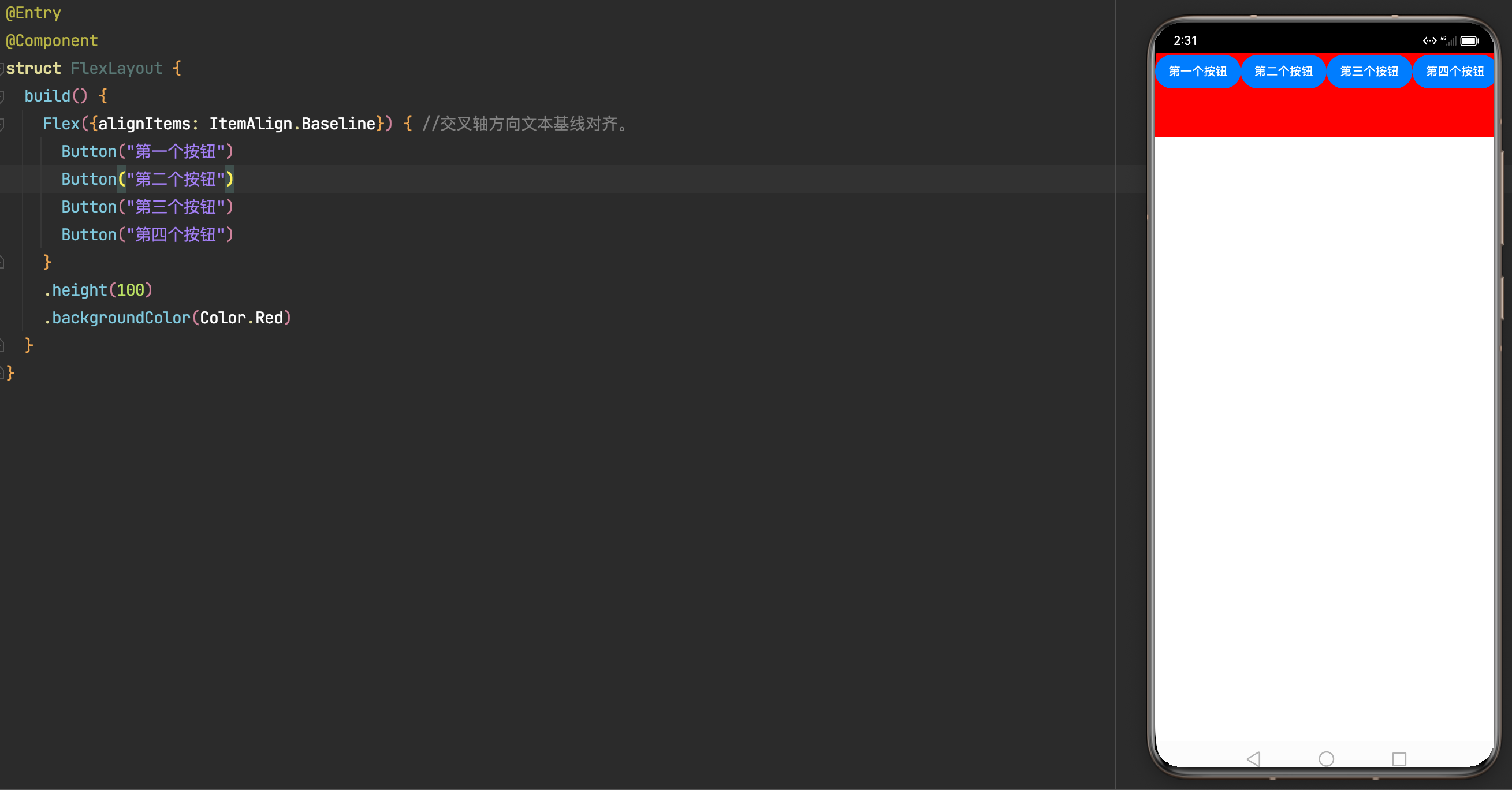 ItemAlign.Baseline 交叉轴方向文本基线对齐。