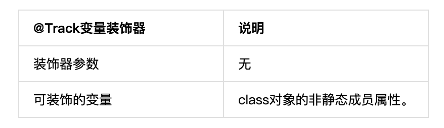 🔊: @Track是class对象的属性装饰器。当一个class对象是状态变量时,@Track装饰的属性发生变化,只会触发该属性关联的UI更新;而未被标记的属性不能在UI中使用。就是说@Track不像@Observe 那样所有的属性都包装成状态变量,@Track操作更加精细, 只针对部分属性。