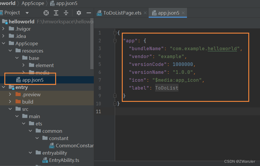 AppScope目录下的app.json5配置文件