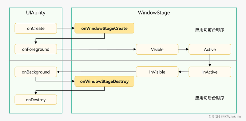 Foreground和Background状态分别在UIAbility实例切换至前台和切换至后台时触发,对应于onForeground()回调和onBackground()回调。