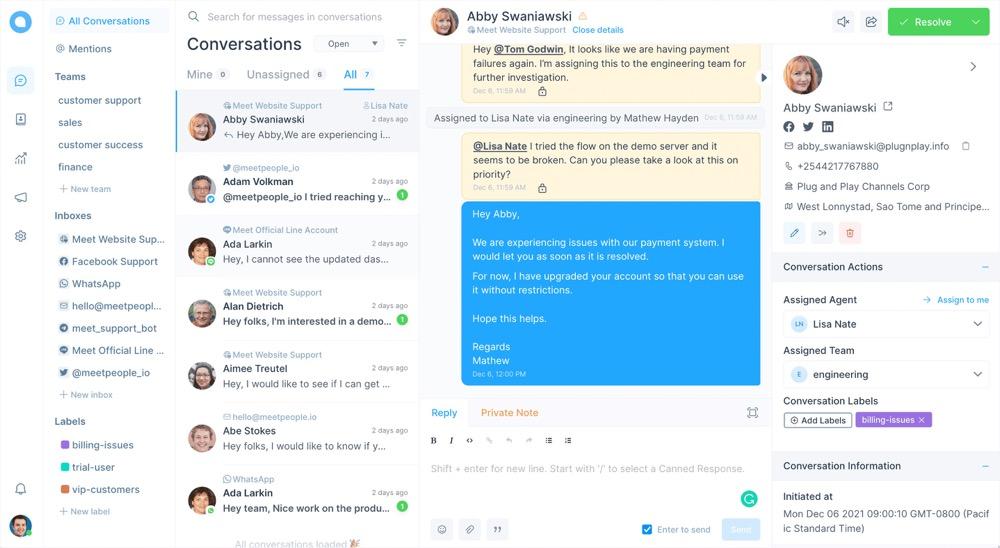 Chatwoot 是一个开源、自托管的用于即时消息渠道的客户支持工具,可以帮助企业提供客户支持。它是 Intercom、Zendesk、Salesforce Service Cloud 等的开源替代品。Chatwoot 对发生在不同沟通渠道的对话提供了一个综合视图。Chatwoot 的前端使用 Vue 编写。