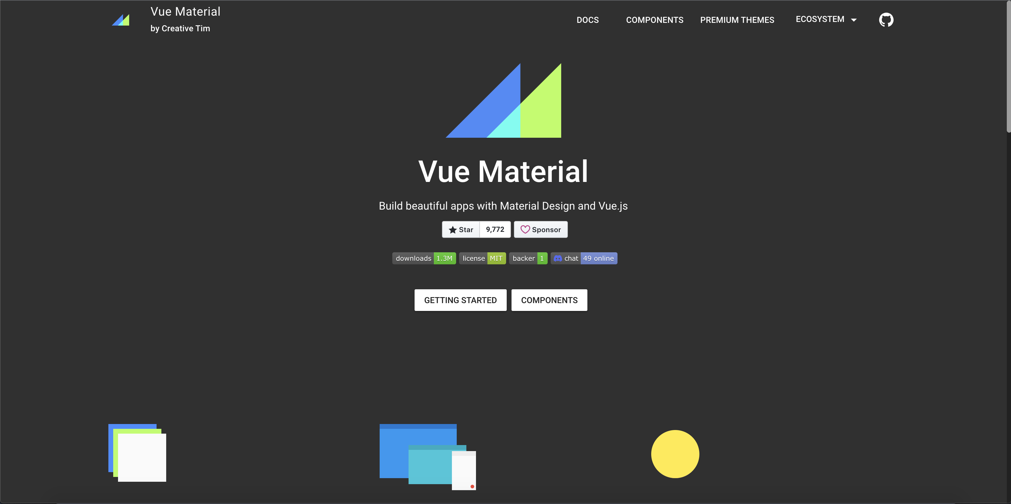Vue Material 轻便,完全按照Google Material 设计规范建造。Vue Material提供超过56个组件来构建不同类型的布局。它的一个伟大之处在于,材料设计框架有真正彻底的文档。该框架非常轻,具有完全符合谷歌材料设计指南的全系列组件。这种设计适合每一个屏幕,并支持每一个现代浏览器。