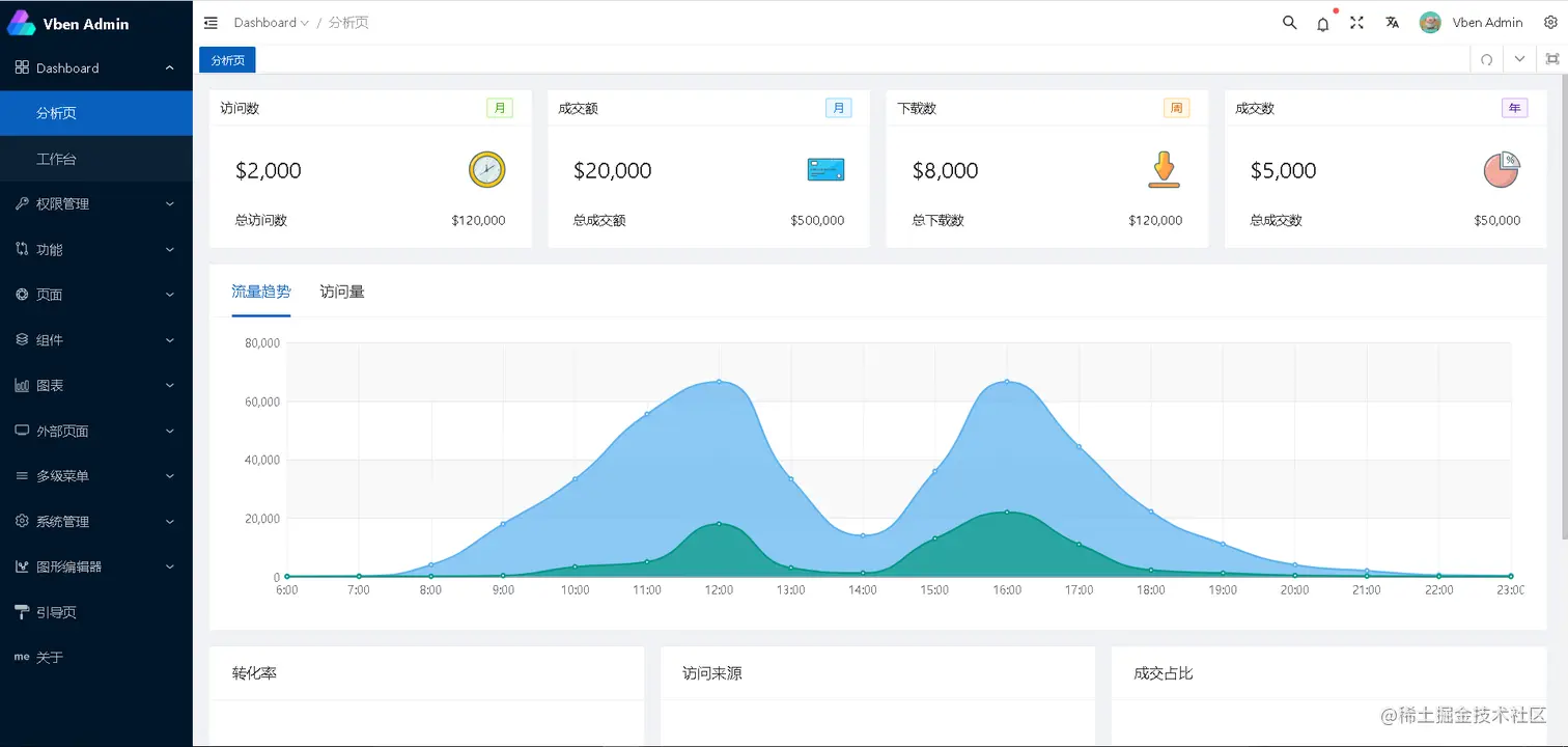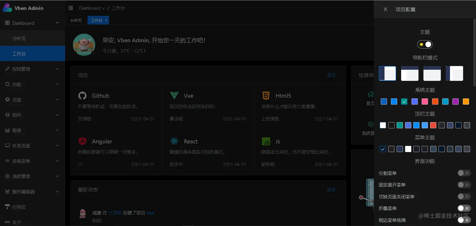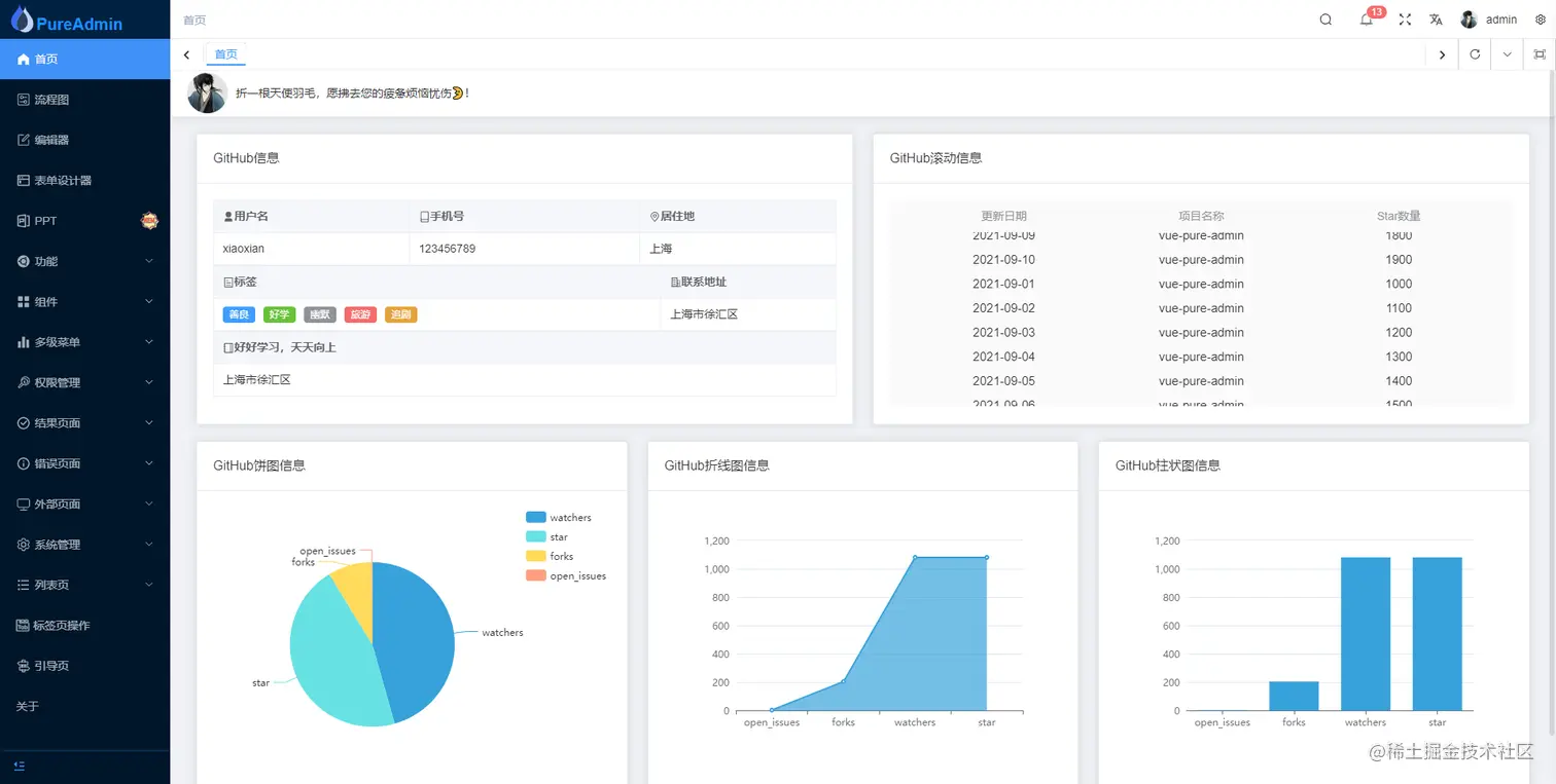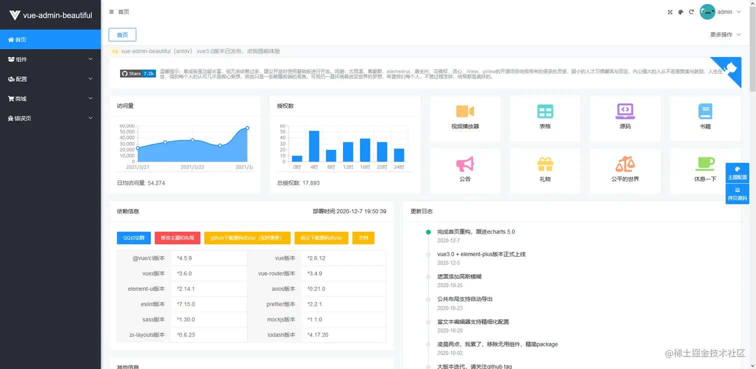 Fantastic-admin是一款开箱即用的 Vue 中后台管理系统框架。有 vue2(现已停止维护)和 vue3 的版本。