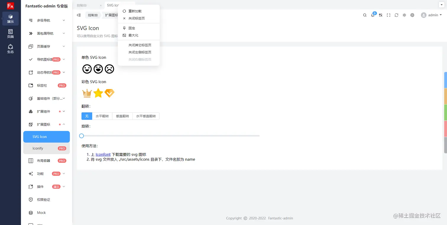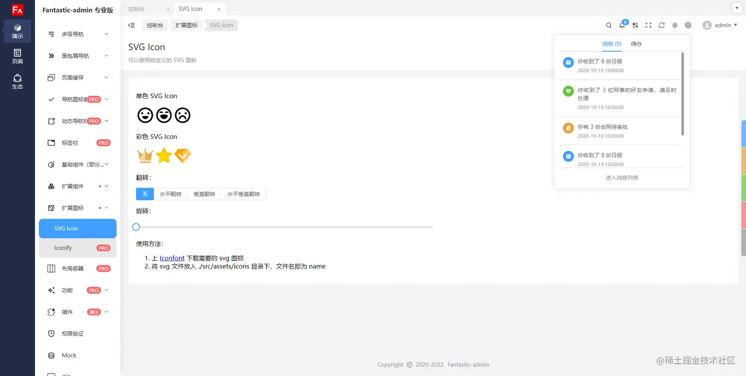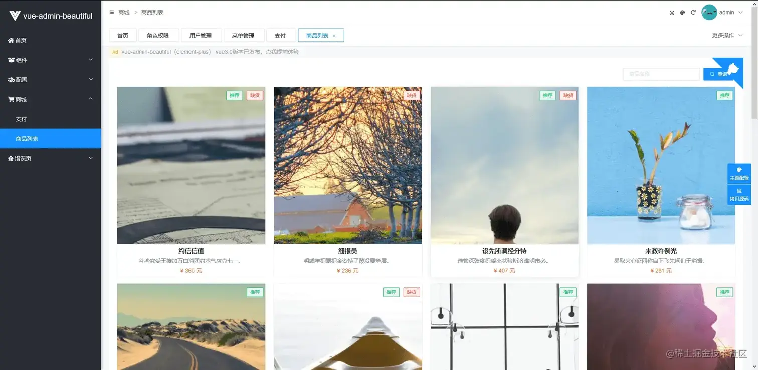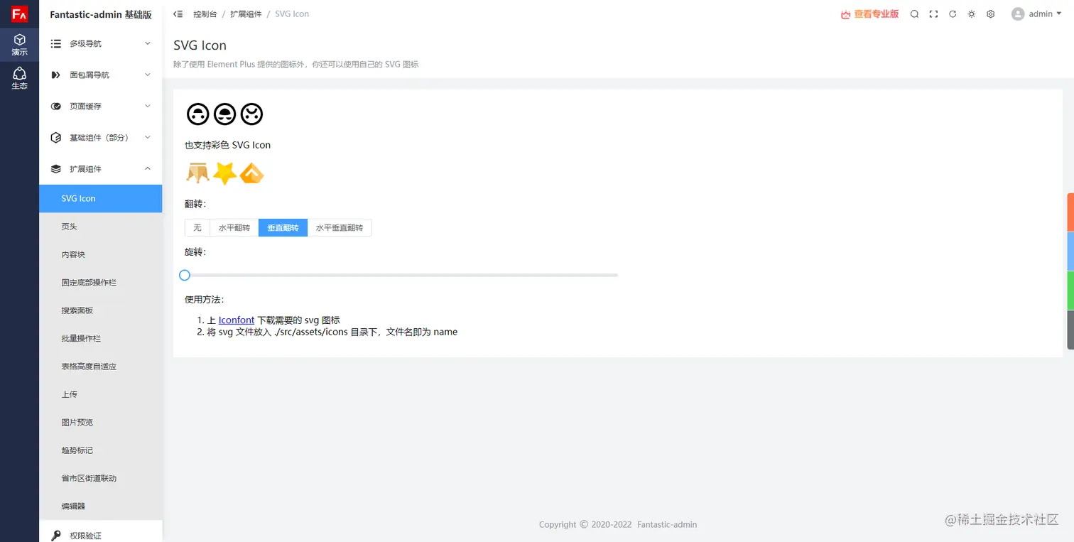 Fantastic-admin是一款开箱即用的 Vue 中后台管理系统框架。有 vue2(现已停止维护)和 vue3 的版本。