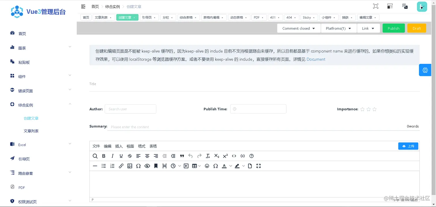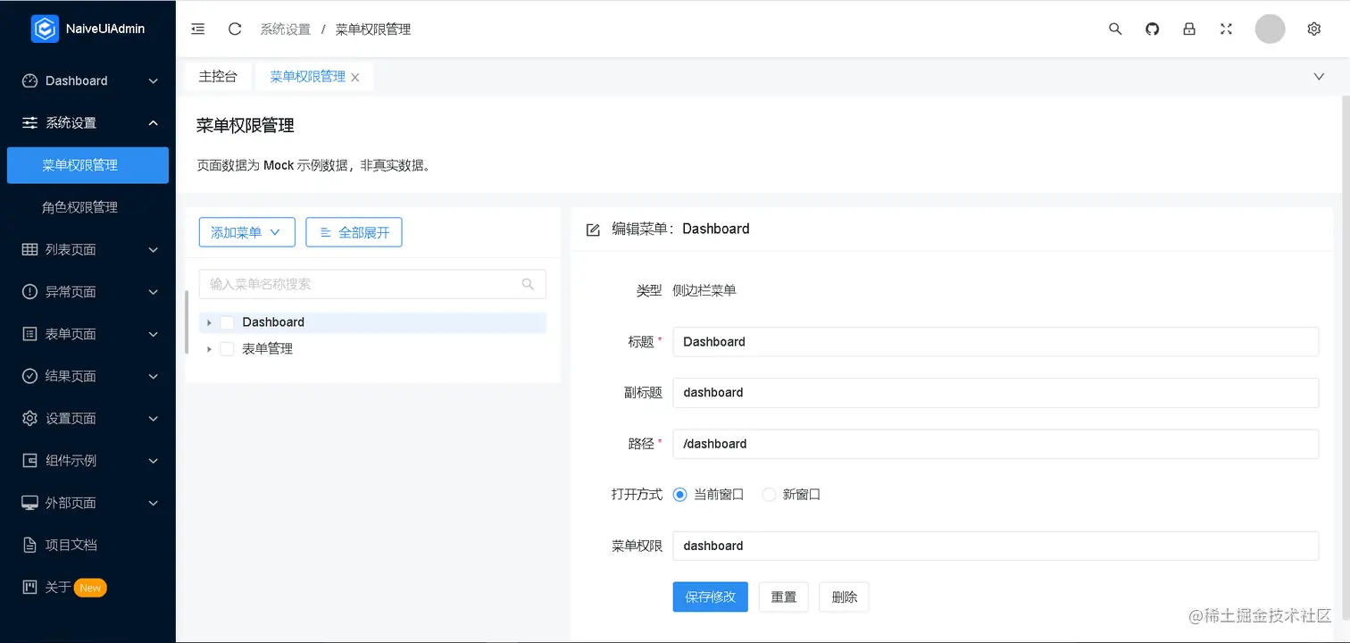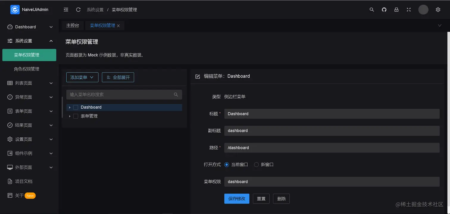 - 权限路由:简易的路由配置、基于 mock 的动态路由能快速实现后端动态路由
