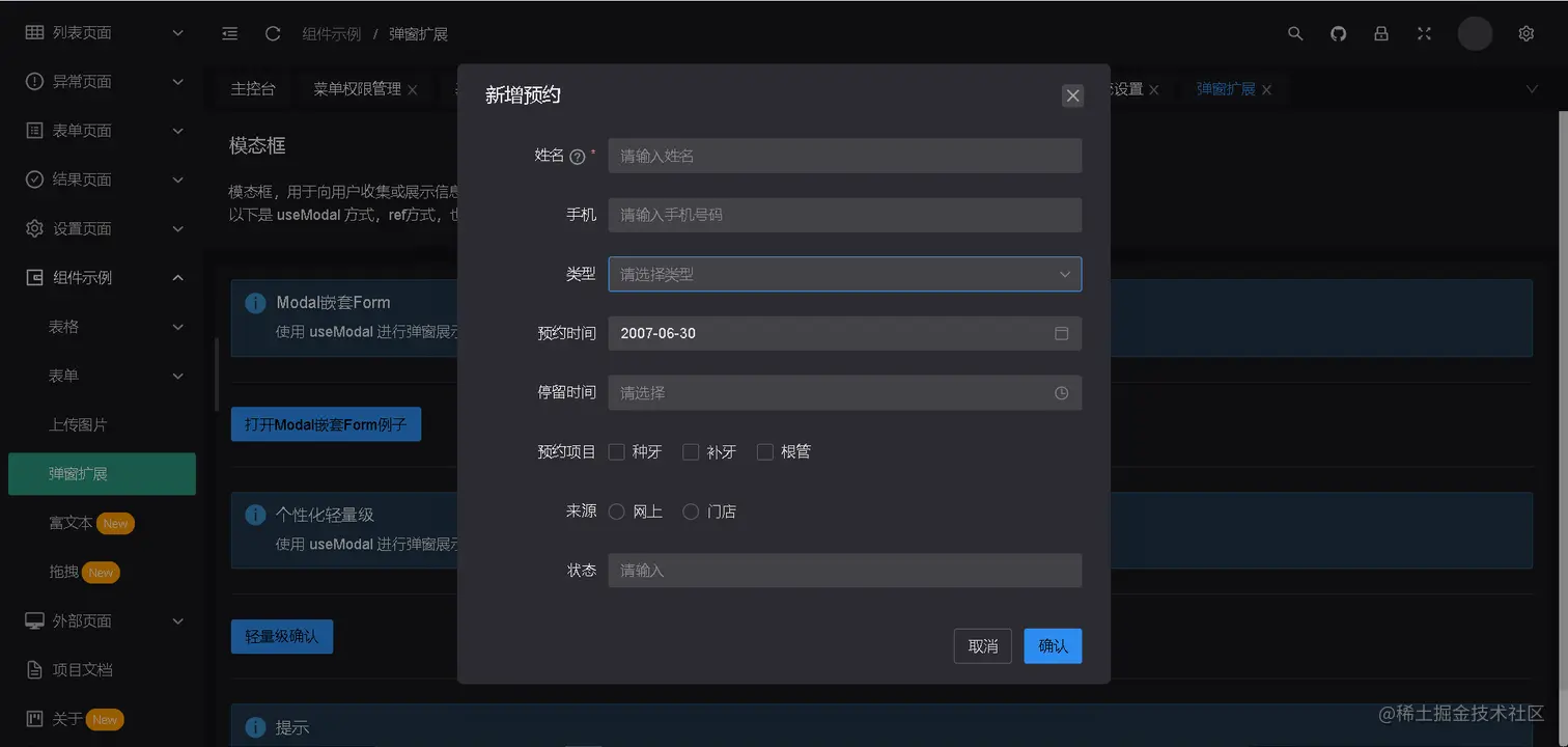 - 已经过多个中后台业务检验过的表格公用组件及弹窗公用组件,详情请查看“页面栏目”内的“业务表格”、“分类联动表格”、“树联动表格”