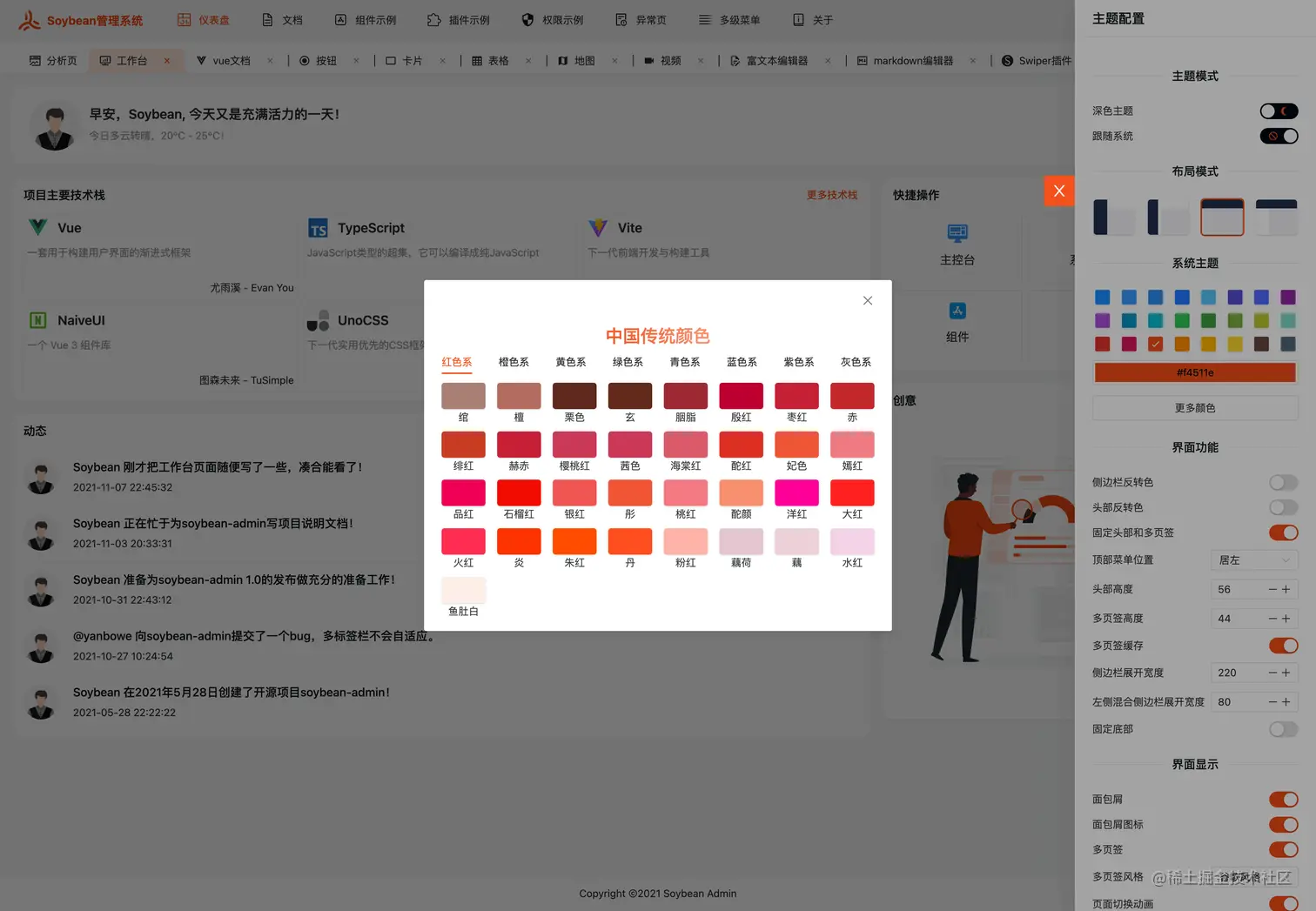 - 主题:丰富可配置的主题、暗黑模式,基于原子 css 框架 - UnoCSS 的动态主题颜色