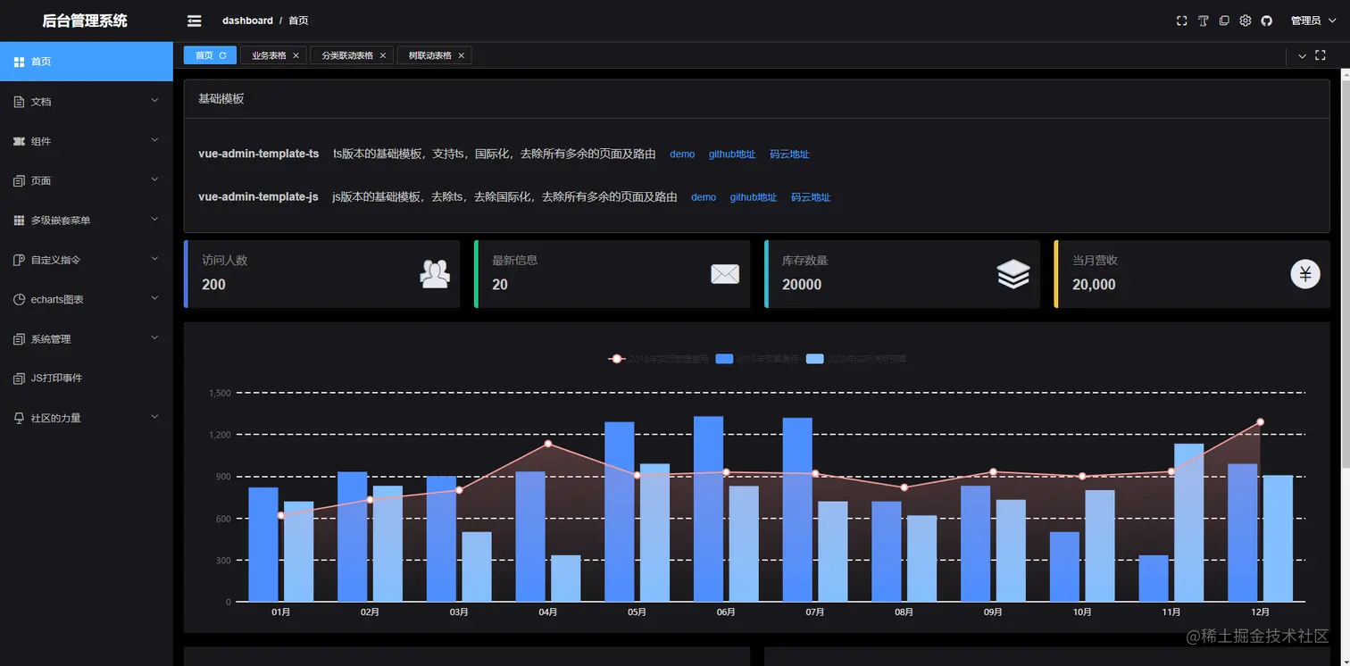 - 方便扩展的国际化解决方案,并提供了两套非国际化的基础模板和两套国际化的基础模板(ts版本/js版本)