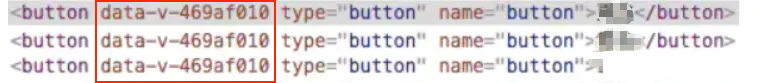 在每个dom元素上,有一个data-v-xxxxxxxx的标识符,这个标识符就是保证scoped有效的根本!我们定位到button上,查看css样式: