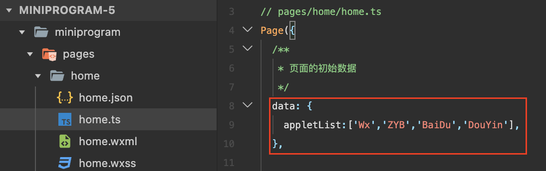 使用模板文件的文件(index.wxml)