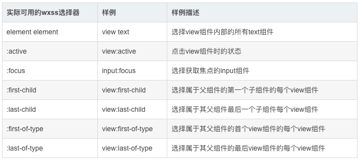 2、实际可用的wxss选择器