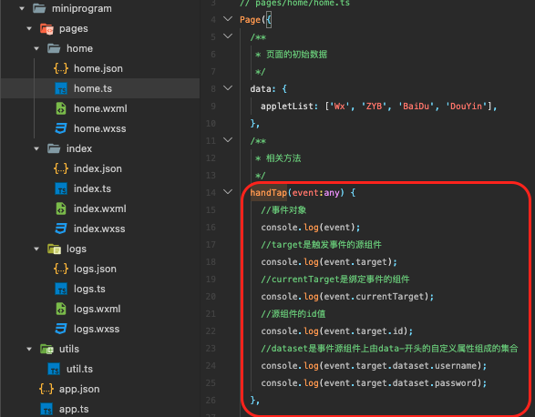 获取事件的参数 e.target.dataset.msg