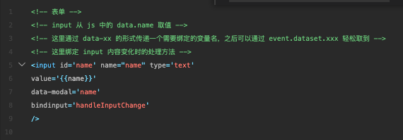BindInput(e: any) { this.setData({ [`${e.currentTarget.dataset.prop}`]: e.detail.value }) }, })