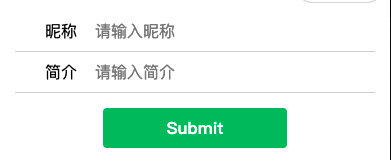 <view class="my-page"> <form catchsubmit="formSubmit"> <!-- 昵称 --> <view class="form-item"> <view class="form-label">昵称</view> <view class="form-input"> <input name="nickName" type="text" model:value="{{ form.nickName }}" placeholder="请输入昵称" /> </view> </view> <!-- 简介 --> <view class="form-item"> <view class="form-label">简介</view> <view class="form-input"> <input name="introduce" type="text" model:value="{{ form.introduce }}" placeholder="请输入简介" /> </view> </view> <!-- 提交 --> <view class="btn-area"> <button style="margin: 30rpx auto" type="primary" formType="submit">Submit</button> </view> </form> </view>