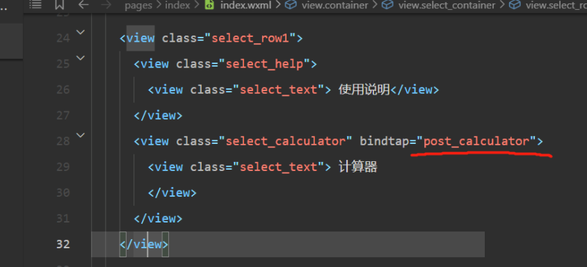 //<!**wxml文件**> <view class="select_calculator" bindtap="next_calculator">