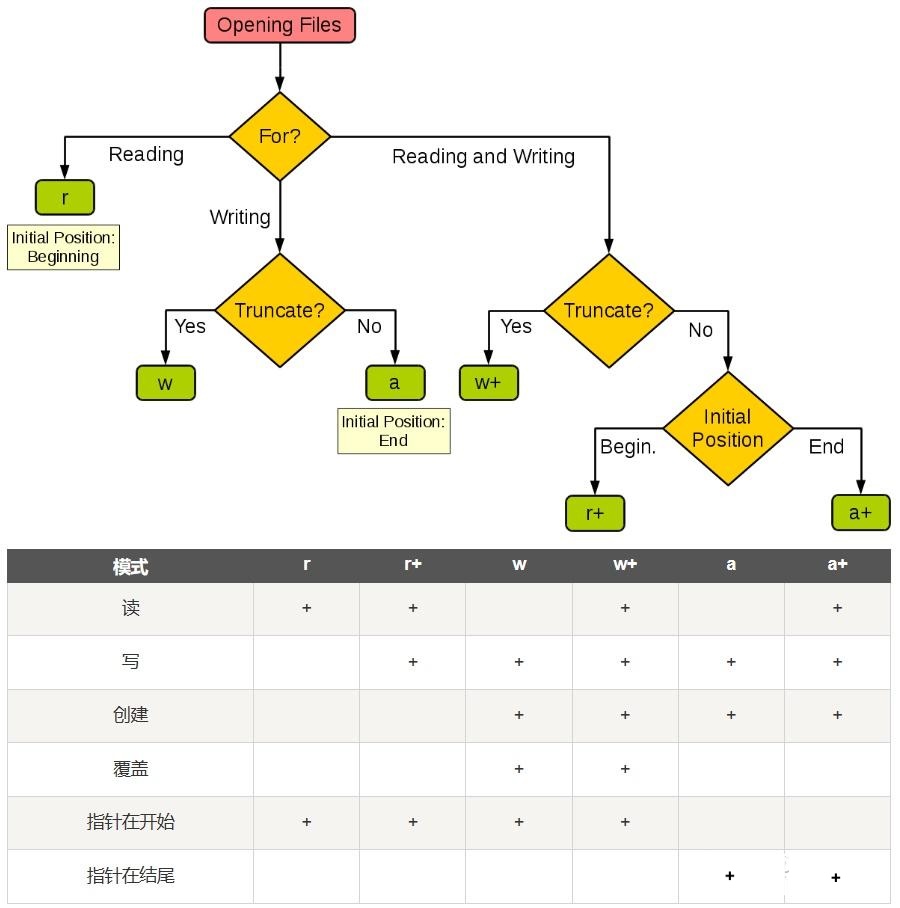 上面示例代码,你可能看到了w,会有所疑惑,下面来看看这张表格,它解释了‘w’是什么。下面的这些模式允许你以不同的方式打开文件,进行读取、写入或追加操作。