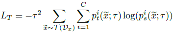 SSKD(using Self-Supervised learning as an auxiliary task for Knowledge Distillation )将自监督学习作为辅助任务,以执行知识蒸馏。在传统KD中,学生网络模仿教师网络关于任务层的预测输出(如分类、位置回归等);而在SSKD中,在变换后的数据集和自监督辅助任务上,能够实现更为丰富的结构化知识迁移。由于对比学习(Contrastive learning)在自监督学习中表现优秀,SSKD选择对比学习作为自监督辅助任务。对比学习通过使网络区分正负样本,最大化每个样本变换前后的相似度(基于Contrastive loss),使得模型学习到具有变换不变性的表征能力。文章使用余弦函数以衡量不同表征之间的相似度,并构造相似度矩阵;然后通过Cross entropy loss,以衡量变换后样本与某一原样本是否为正样本对: