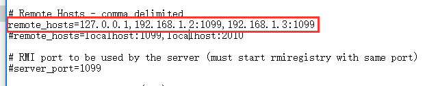 例如:remot_hosts=127.0.0.1,192.168.1.2:1099,192.168.1.3:1099