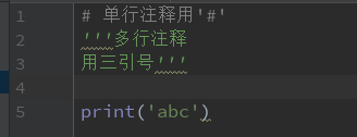 1.单行注释用‘#’,多行注释用'''三引号'''