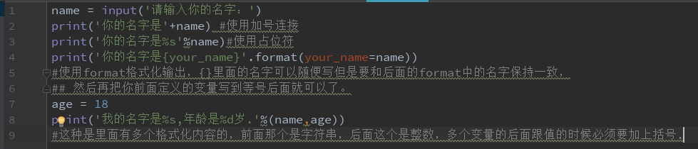 2.使用占位符:%s、%d、%f,字符串、整数、小数