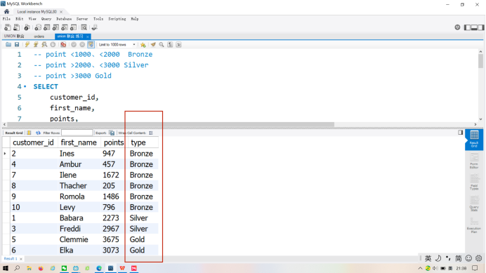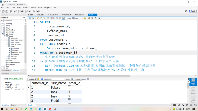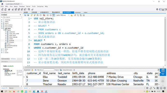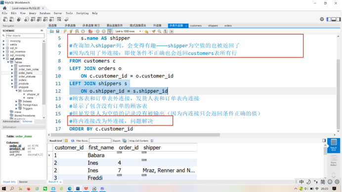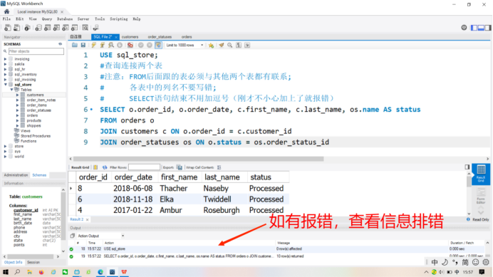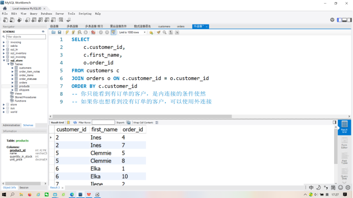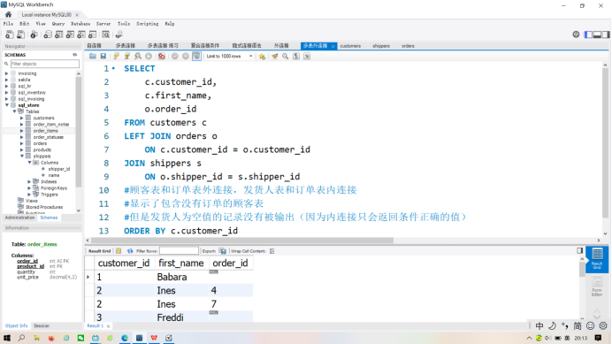 现在我们想要输出带有顾客信息的订单,可以将两表连接——内连接