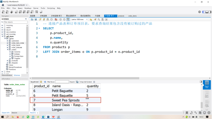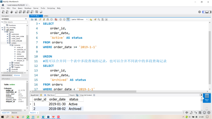 我们不能在连接这个结果和订单状态表的时候使用这个技巧,因为order_statuses表中的状态“status”在orders表中叫做“order_status_id”