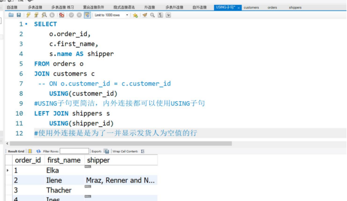 USING() 括号内直接写上相连接的两个表的相同的列名