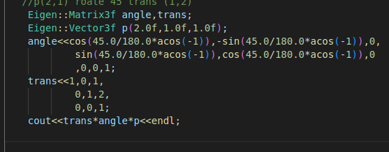 给定一个点 P=(2,1), 将该点绕原点先逆时针旋转 45◦,再平移 (1,2), 计算出