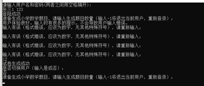 a.如果输入”切换为XX”表示切换类型,在命令行输入切换为小学或者切换为初中或者切换为高中,然后输入题目数量(10-30)。