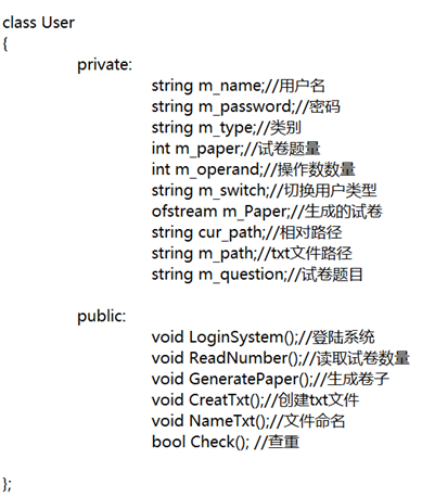 比如User类做父类,只有两个虚函数,登录函数,和功能选择函数,三个必要的私有变量,类型、用户名、密码。这样再到相应的类中去重载相应函数,无形中减少了一部分代码量,并且也会时怎个程序变好理解!
