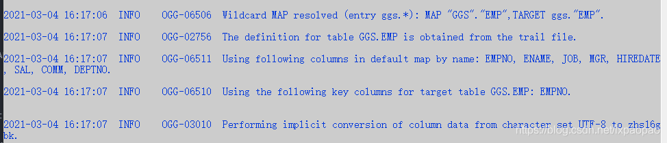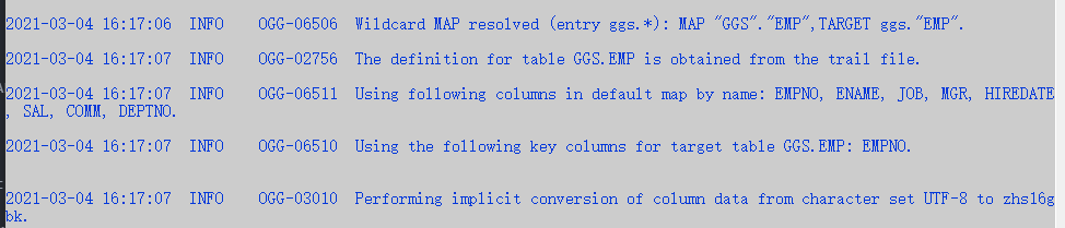 REPLICAT RUNNING REP1 00:00:00 00:00:06